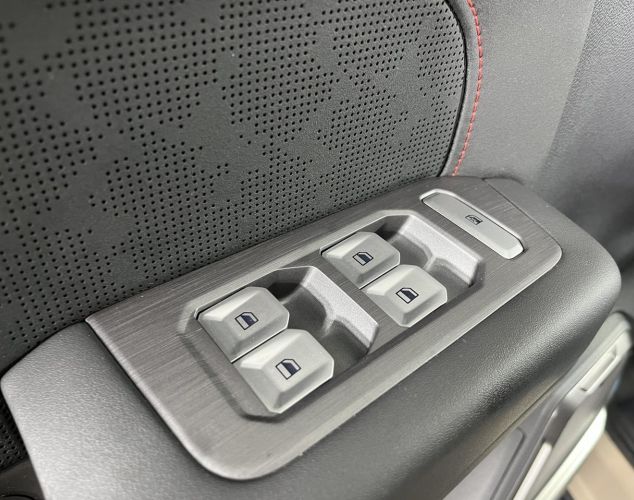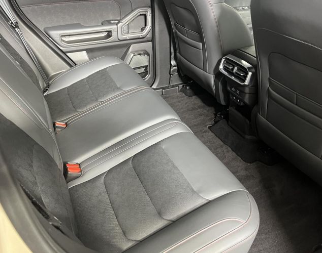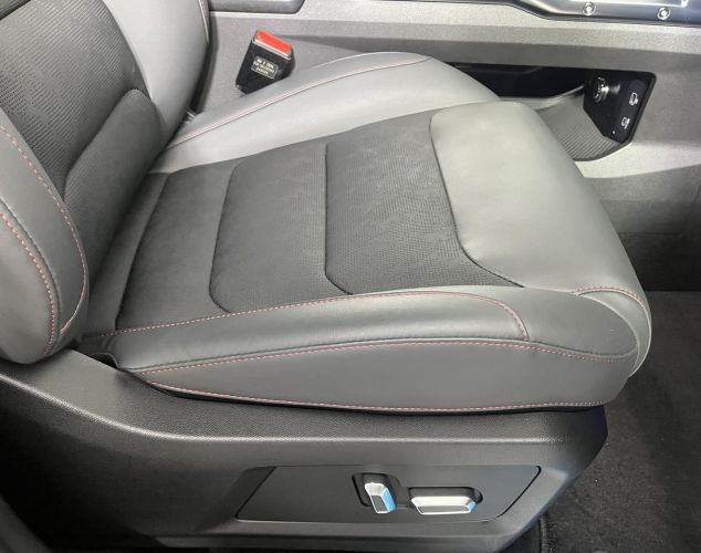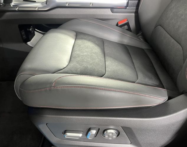 Комбинированная отделка сидений из искусственной кожи и искусственной замши с контрастной прострочкой нитью. (только для черного интерьера с красными элементами)